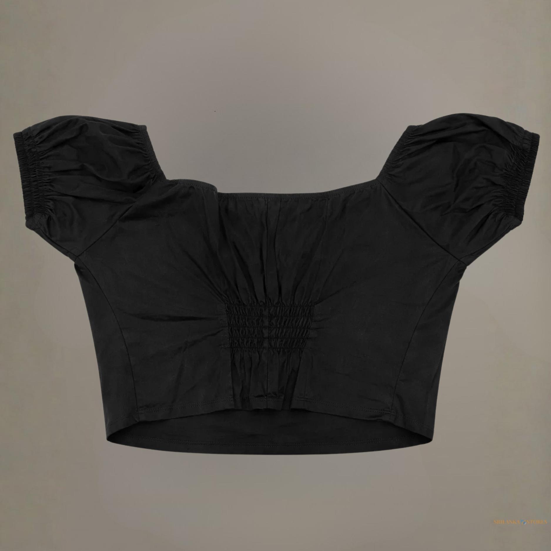 A stylish black off-shoulder crop top made from 100% cotton for a soft and breathable feel. Designed with a gathered back for comfort and flexibility, this trendy top is perfect for casual outings and everyday fashion. Available in XS to 3XL sizes.