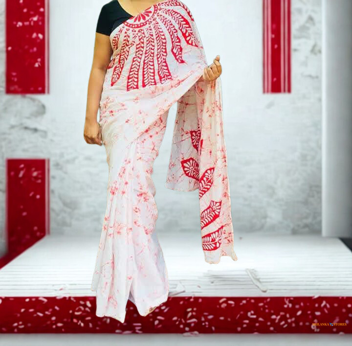 Chic Two-Tone Handcrafted Batik Saree – Red & White | Sinha Batik