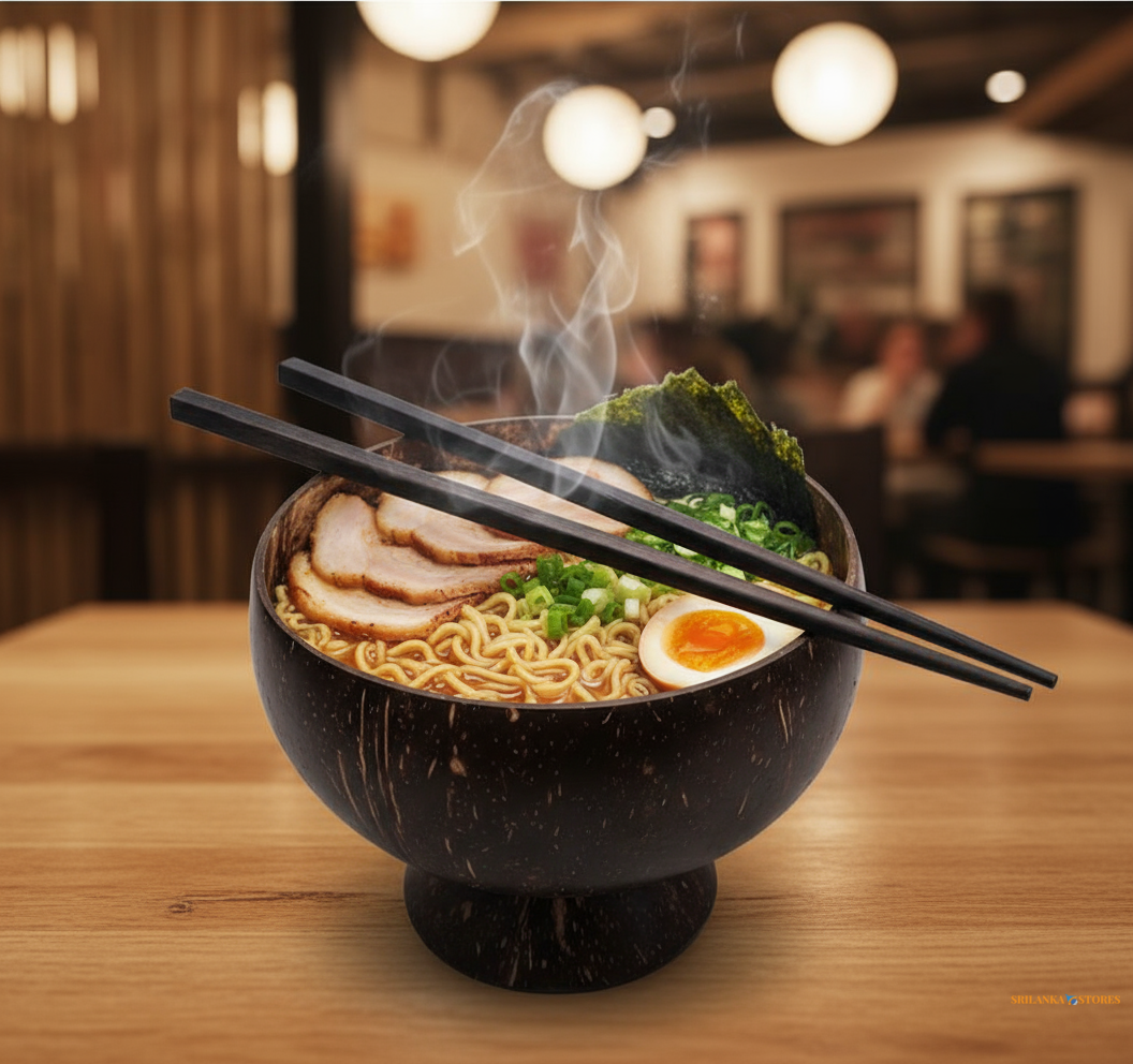 Elevate your meals with this beautifully handcrafted Coconut Shell Chopsticks and Bowls Set — where sustainability meets style and tradition.
