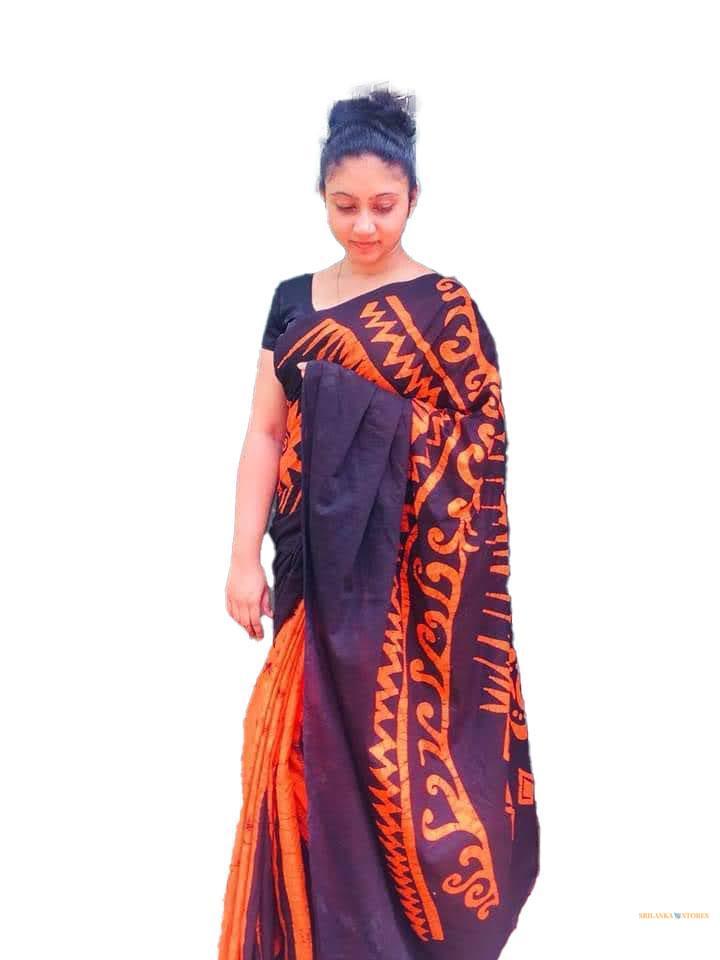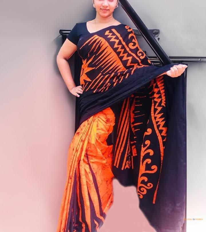 Elegant Two-Tone Handcrafted Batik Saree – Orange & Black | Sinha Batik