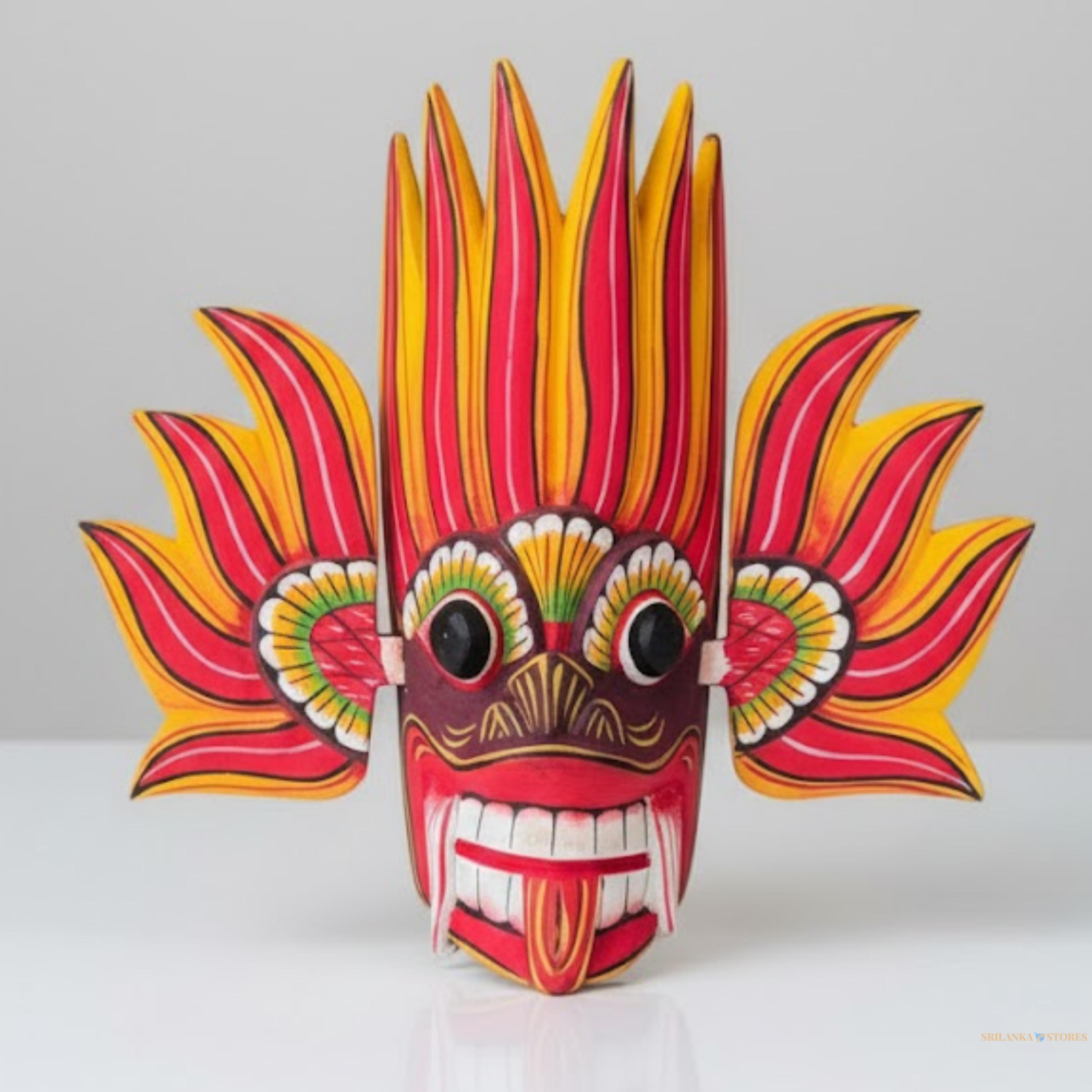 The Gini Raksha Mask is one of Sri Lanka’s most iconic traditional masks, celebrated for its vibrant colors, fierce expression, and deep cultural meaning. Crafted with precision by the expert artisans , this 10-inch masterpiece reflects generations of craftsmanship and heritage.
