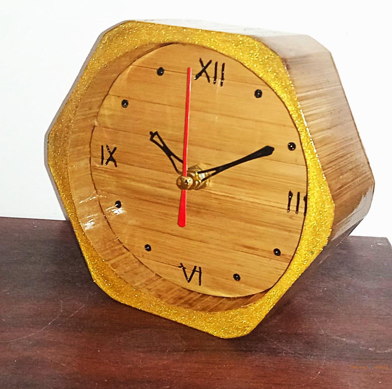 Add a touch of nature-inspired elegance to your space with this Handcrafted Bamboo Wood Table Clock from Hiru Homes. Designed with sustainability and craftsmanship in mind, this 15cm clock is made from high-quality bamboo wood—lightweight yet durable, with a warm, natural finish that complements any decor style.