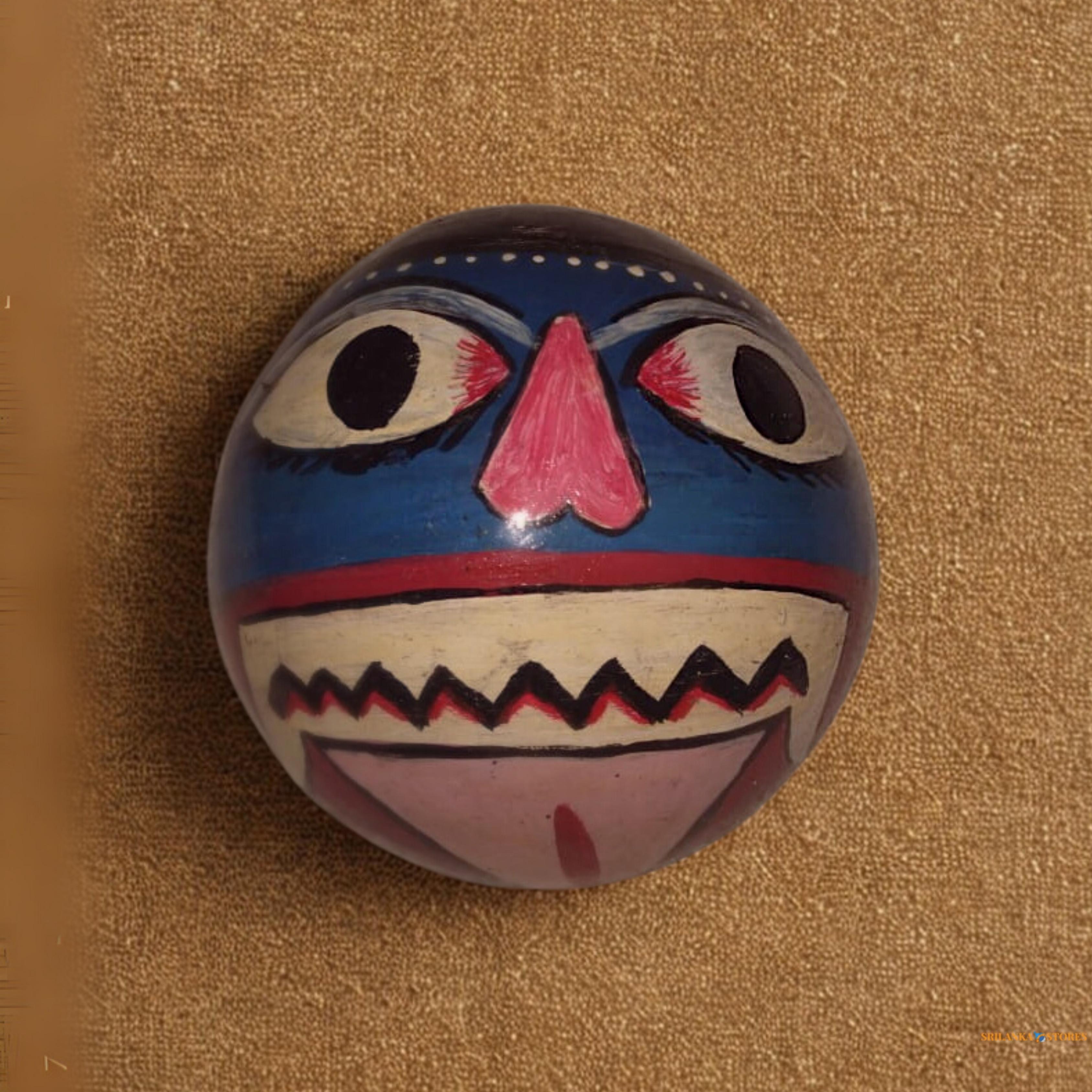 Handcrafted Coconut Shell Mask – Colorful Decorative Art