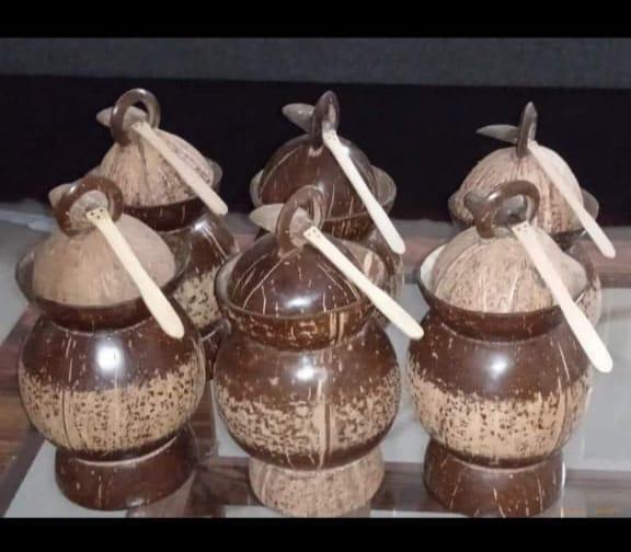 Handcrafted Coconut Shell Salt Pot – Natural & Eco-Friendly (8–12” Height)