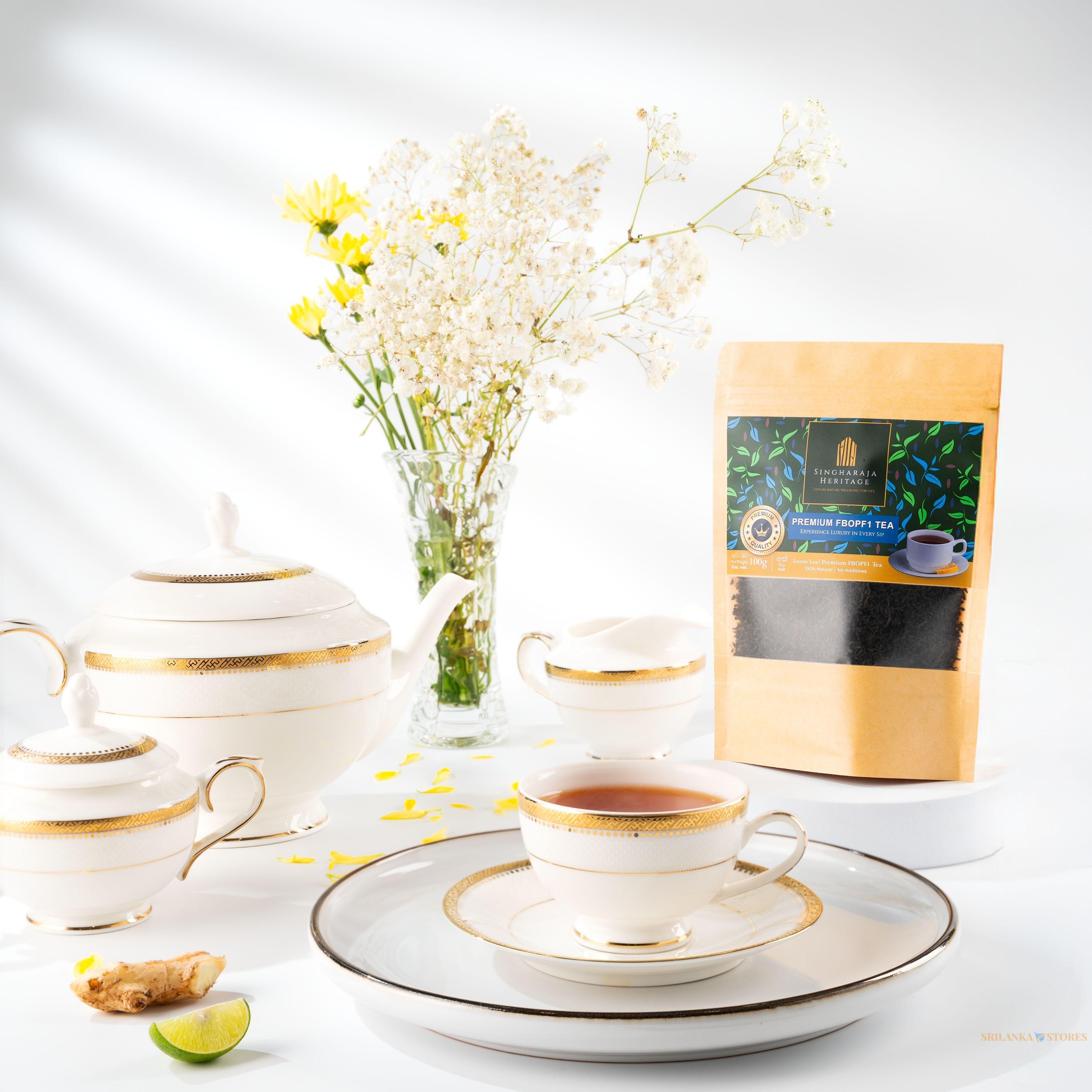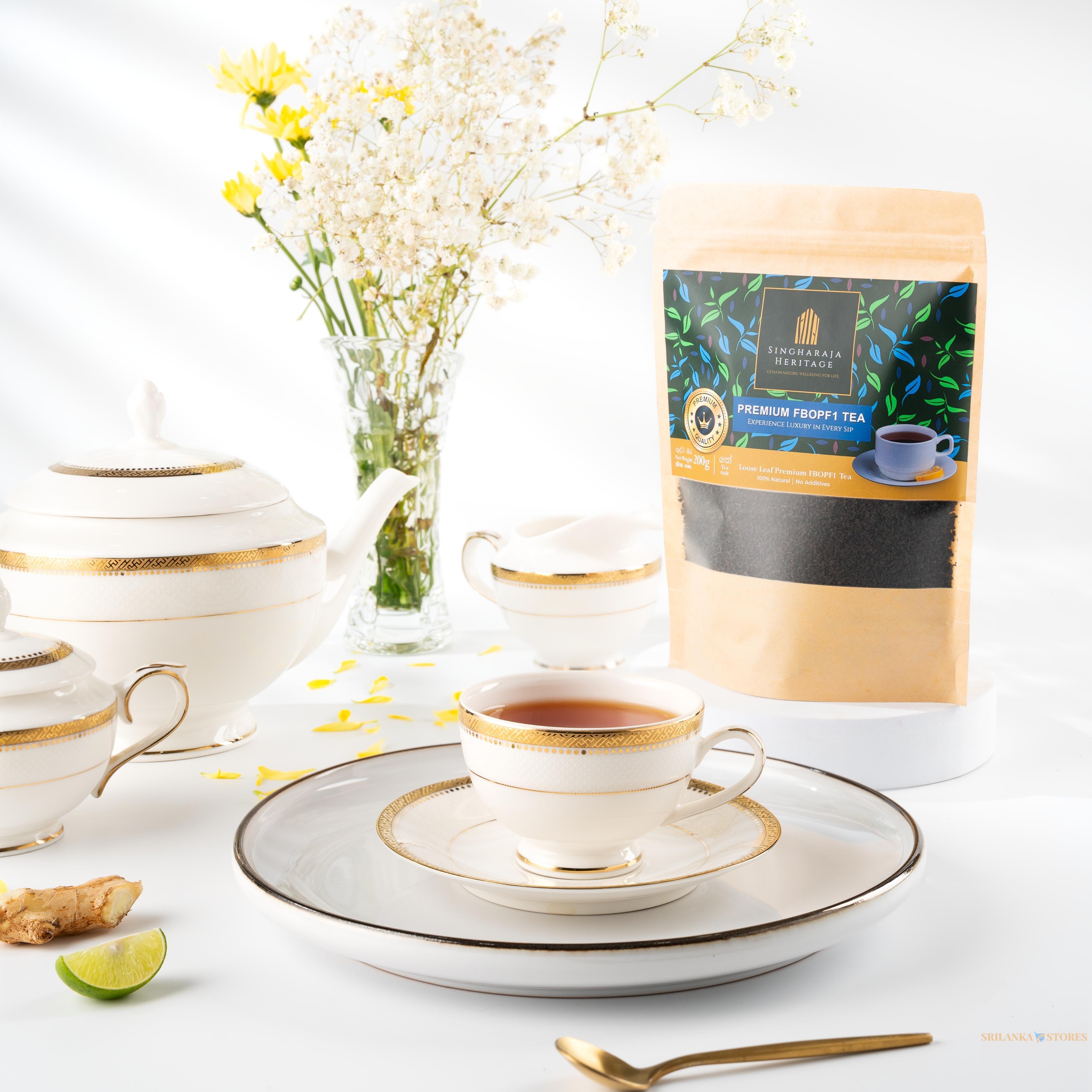 Discover the depth and character of Singharaja Heritage Premium Ceylon FBOPF1 (Flowery Broken Orange Pekoe Fannings 1) — a distinguished semi-leaf grade crafted for those who appreciate a stronger, richly layered cup.
