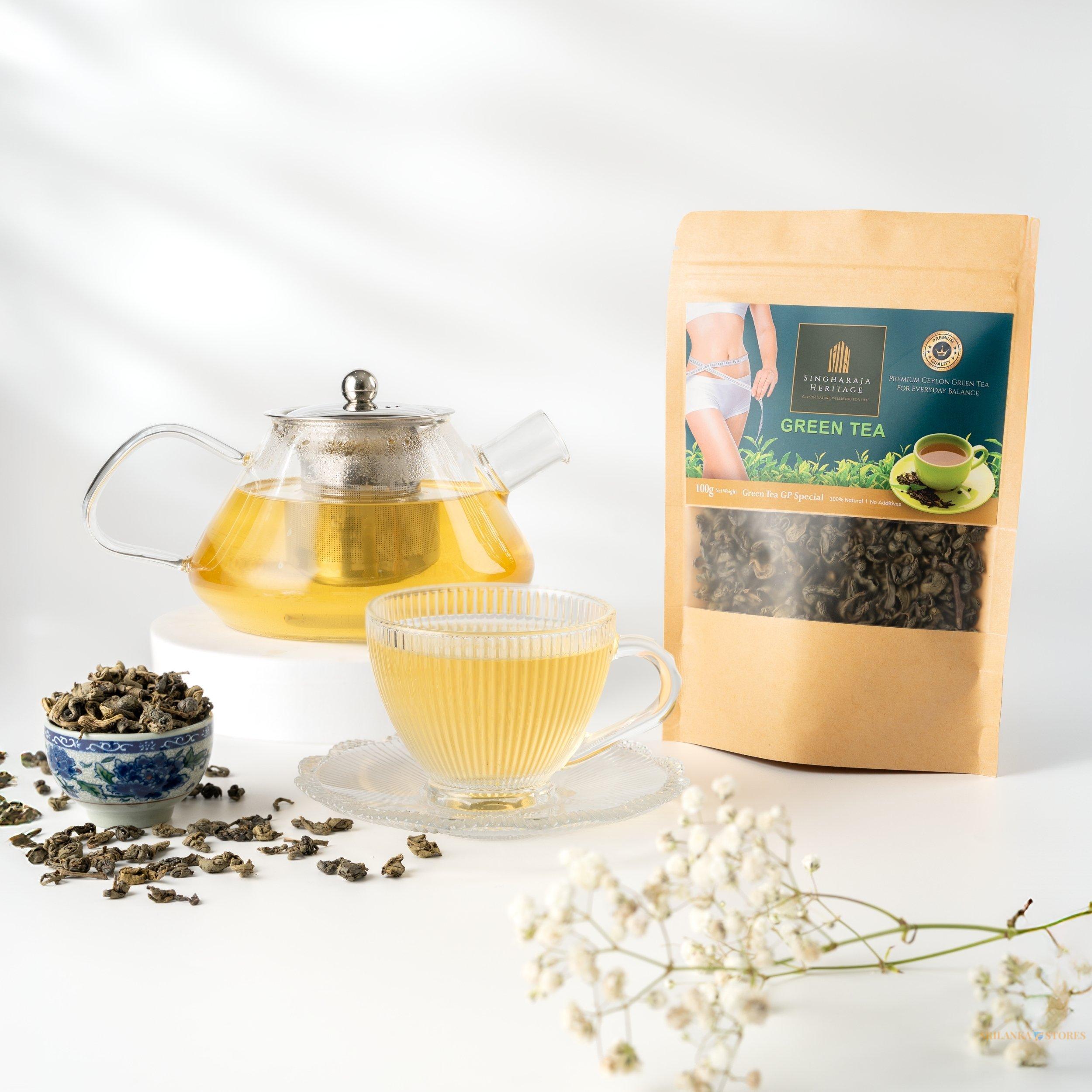 Available in 100g and 200g premium loose-leaf pouches, this GP Special Green Tea embodies purity, freshness, and the timeless heritage of Ceylon green tea craftsmanship — created for those who value both flavor and well-being in every cup.
