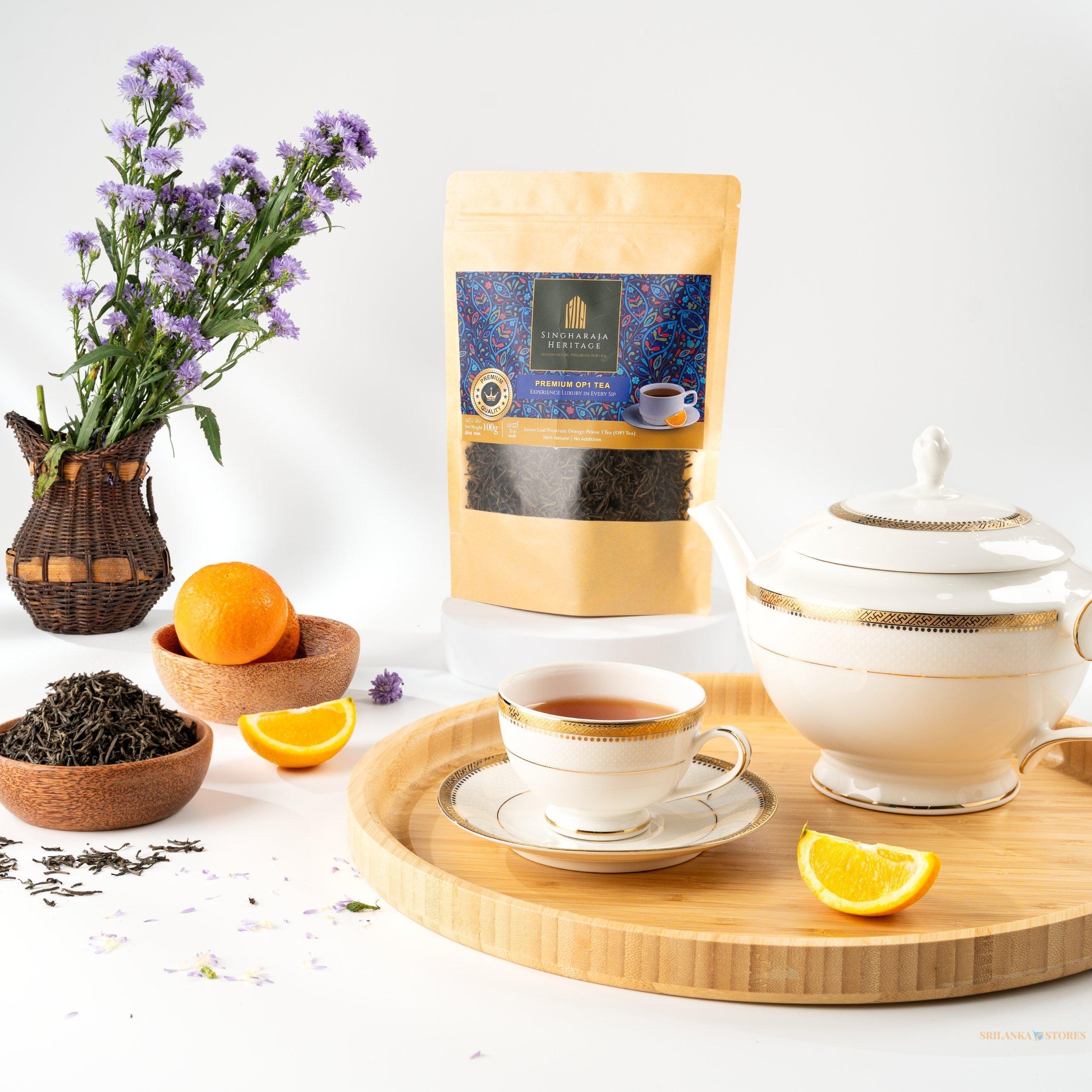 Experience refined sophistication with Singharaja Heritage Premium Ceylon Orange Pekoe 1 (OP1) Loose Leaf Tea, a superior whole-leaf grade treasured for its graceful appearance and delicate character.