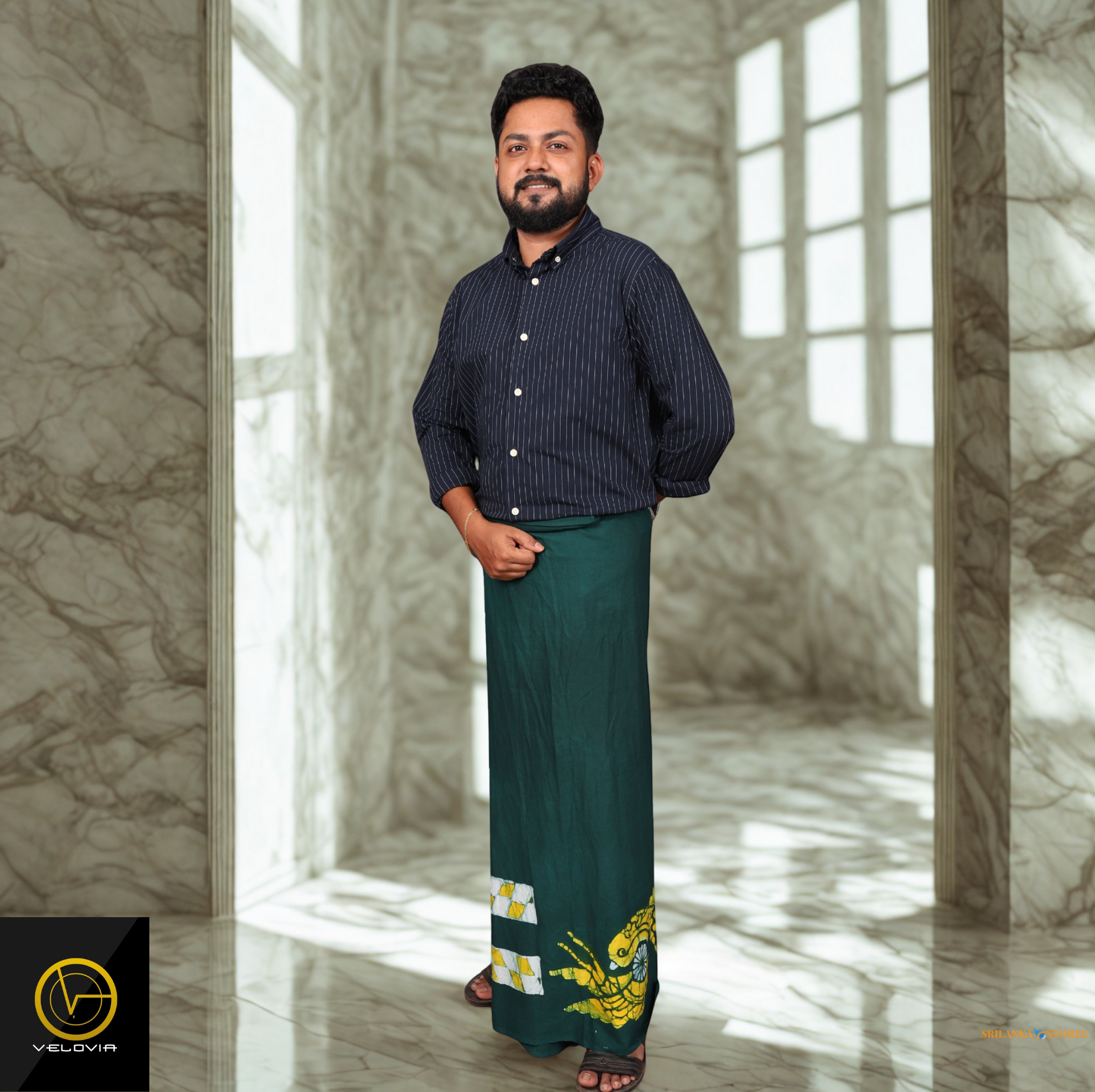 Elevate your traditional style with Velovia's SRNG026 Batik Sarong, crafted from 100% premium cotton in vibrant green and yellow tones. Designed for comfort, elegance, and cultural pride.