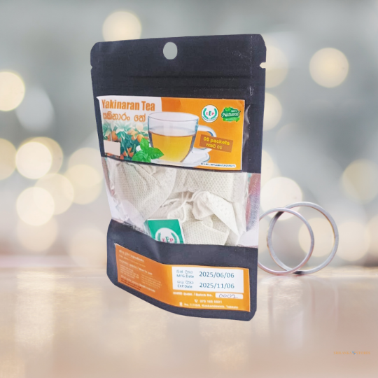 Discover the soothing power of Yaki Naran leaves with Edirisinghe Eco Products. Each pack contains 10 herbal tea bags made from 100% dehydrated Yaki Naran leaves, traditionally used to ease phlegm-related conditions and promote wellness.